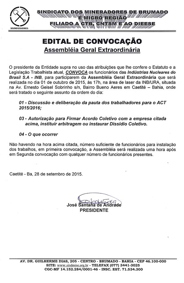 Edital de Convocação - Assembléia Geral Extraordinária - Indústria Nucleares do Brasil S.A - INB