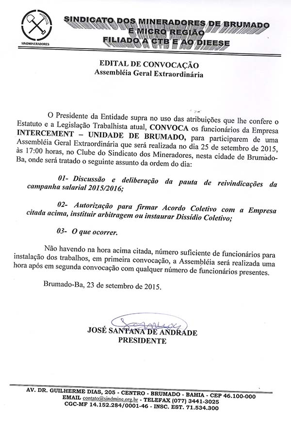 Edital de Convocação - INTERCEMENT - Unidade de Brumado