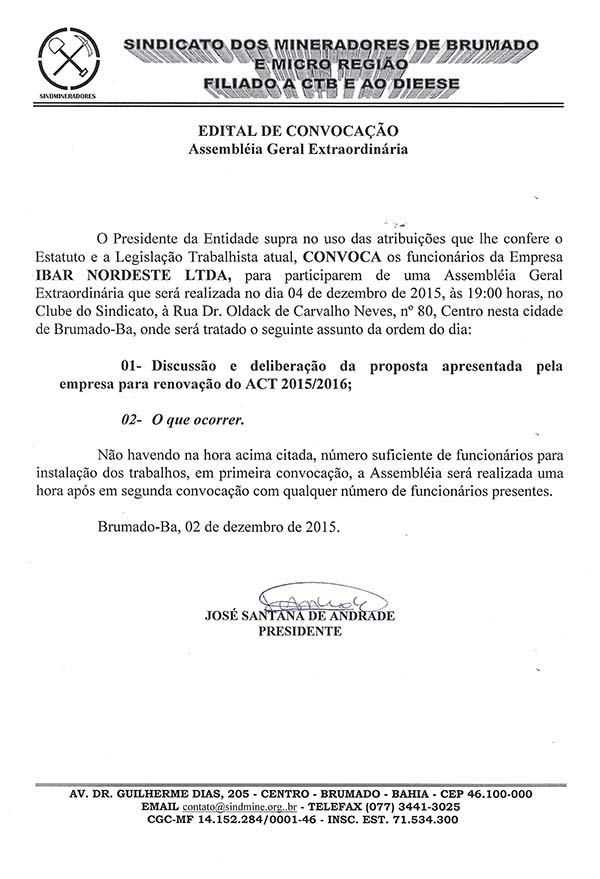 Edital de Convocação - Assembléia Geral Extraordinária - Ibar Nordeste LTDA