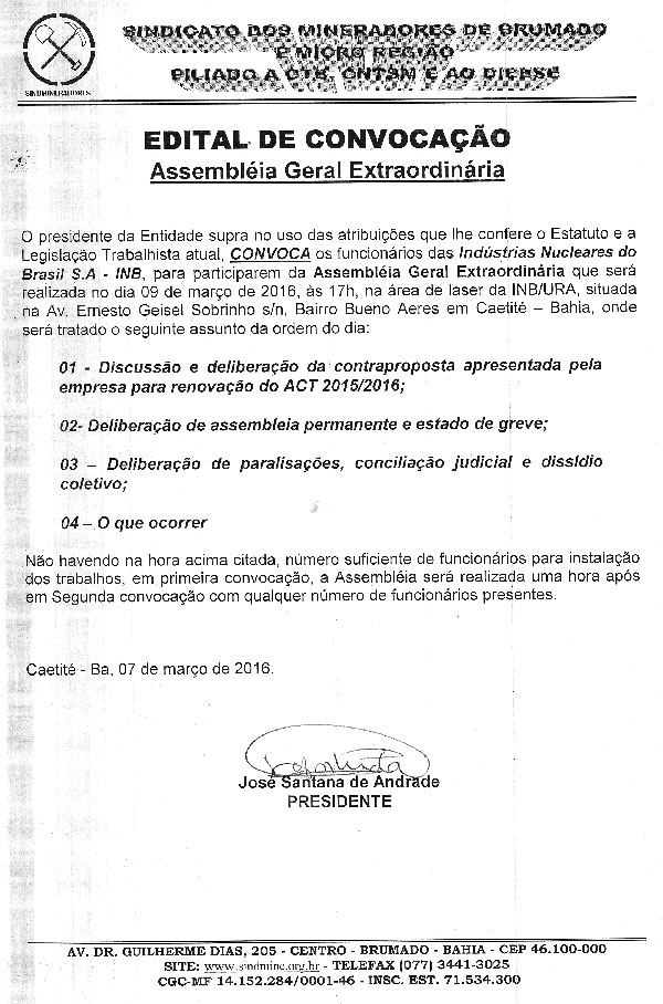 Edital de Convocação - Assembléia Geral Extraordinária - Indústria Nucleares do Brasil S.A - INB